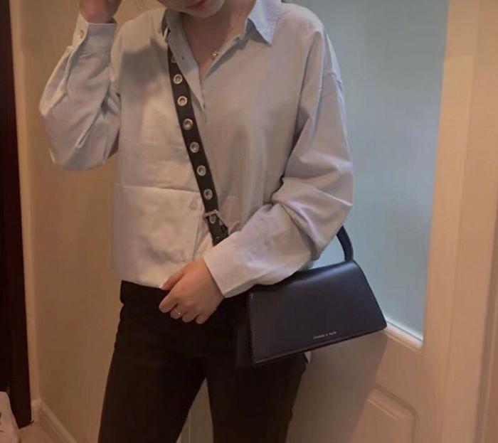梯形包。这款包包的设计感十足,而且还有圆孔的肩带设计,非常适合出街!这款是很不容易撞包的,而且肩带还可以调节!