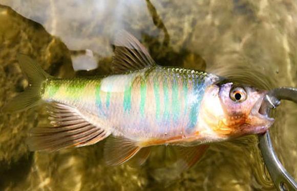 宽鳍鱲的外表看上去很丑陋,表面的颜色很鲜艳,嘴巴看上去发黑,如果水的含氧量低就会死亡,因此经常在池塘里看到这种鱼的尸体。