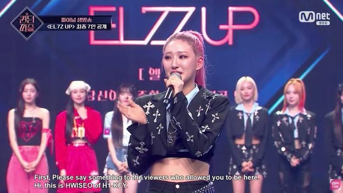 第五名成员H1-KEY辉玹,她是得票最高选手,获得第一名。辉玹说道,以这种方式出现是我很感激的事情,但我很感激你看好它,甚至给我一个很高的第一位置,今后,我会更加努力地成长为一名展现更好形象的艺人,以报答大家的关心、厚爱和支持。