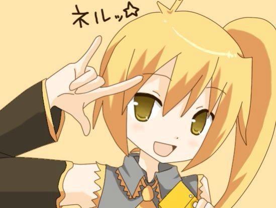 不同于初音会拿着葱,亚北则是持有移动电话。