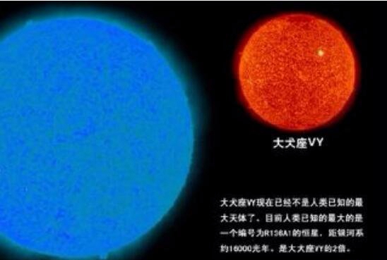 假若地球是一个直径1厘米球体,太阳便是一个直径为109厘米的球体,照以上比率换算大犬座VY猜测最大直径大概是2.3公里。从以上不妨瞅出,暂时已知最大的星球几乎大得难以设想!而比地球大130万倍的太阳在它眼前都变得没有值一提,更而且是小小的地球了!大犬座VY到底比地球大几倍?你本人不妨设想一下吧!而小编在前方所说的R136a1则比这颗大犬座VY还要更大,传闻是大犬座VY的二倍,这体积真是大到无法设想啊!当前你该了解世界最大的星球是什么了吧!