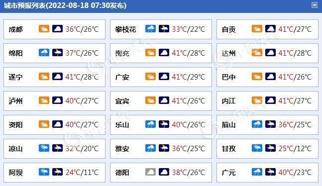四川省气象台预计,未来三天,盆地高温天气持续。川西高原、攀西地区多分散阵雨或雷雨,局地有短时强降水、雷暴等强对流天气。