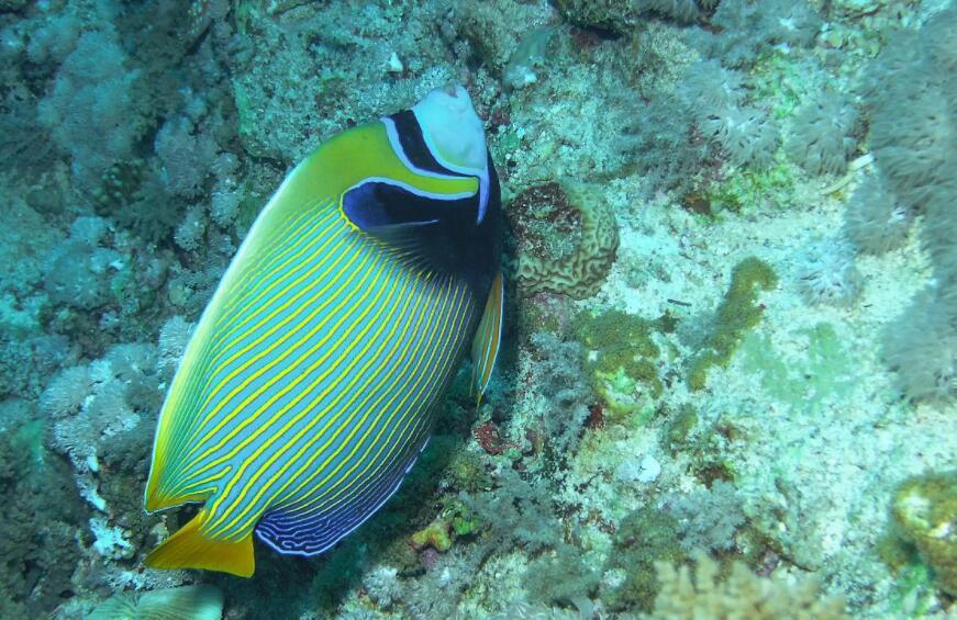 帝王天使鱼以其身上自带的不同颜色的各种图案而闻名,也是世界上最美丽的水生动物,它们的体形不大,尾巴还带着嫩嫩的黄色,美丽的它们是水生动物里面很显眼的鱼类。
