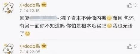 买家还没有很生气,豆得儿自己却生气了:这个包是礼物,不喜欢就退货吧!这条裤子看起来根本不像内衣。恐怕你根本就没买过!