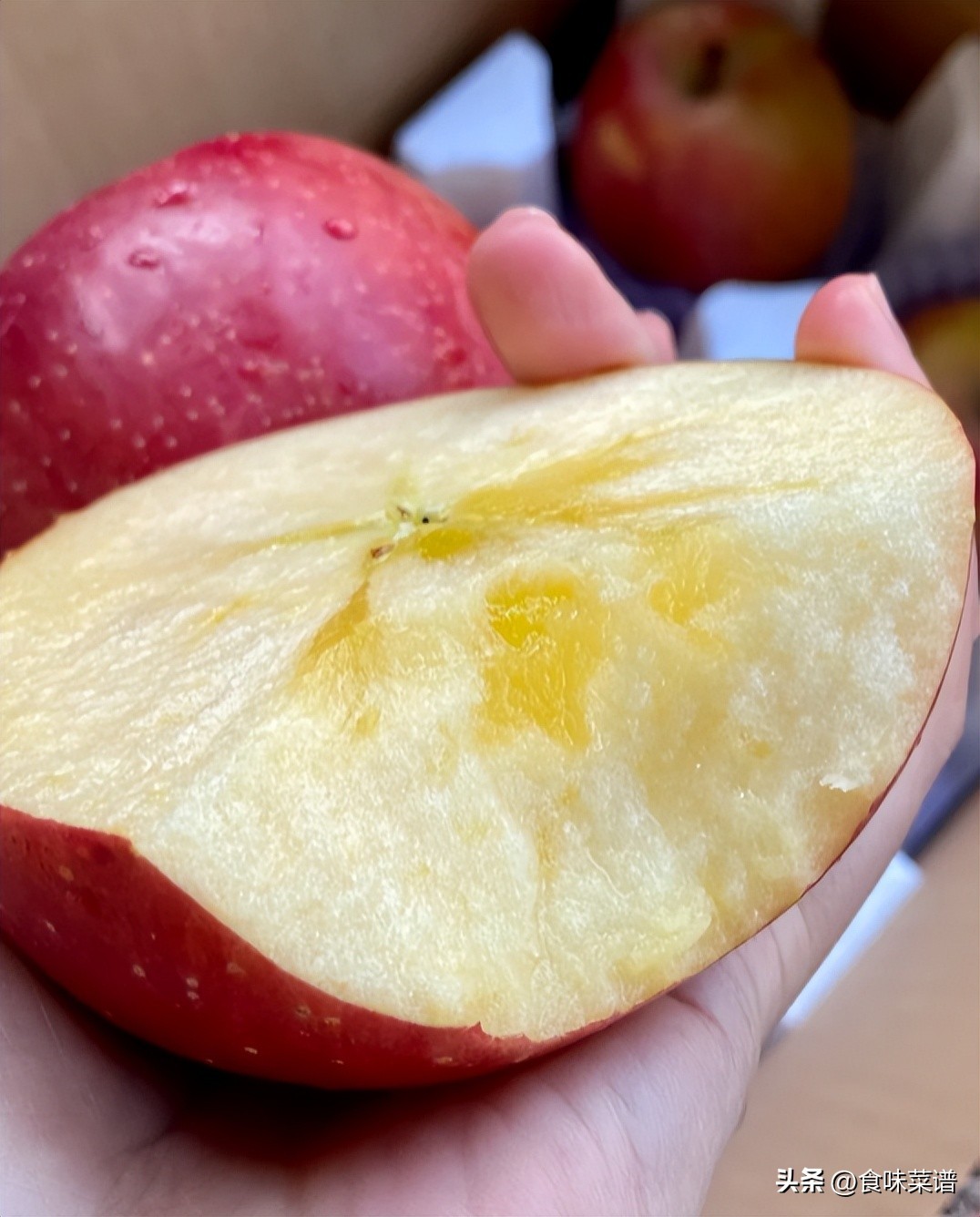 “果形端正、色泽艳丽、果肉甜脆、香气浓郁”,看见就想吃,入口汁水丰盈,酸甜正合适,单凭这一个优点,就秒杀了大部分苹果。