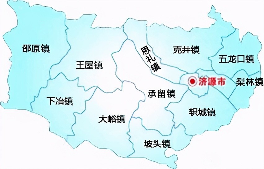 济源市下辖5个街道、11个镇