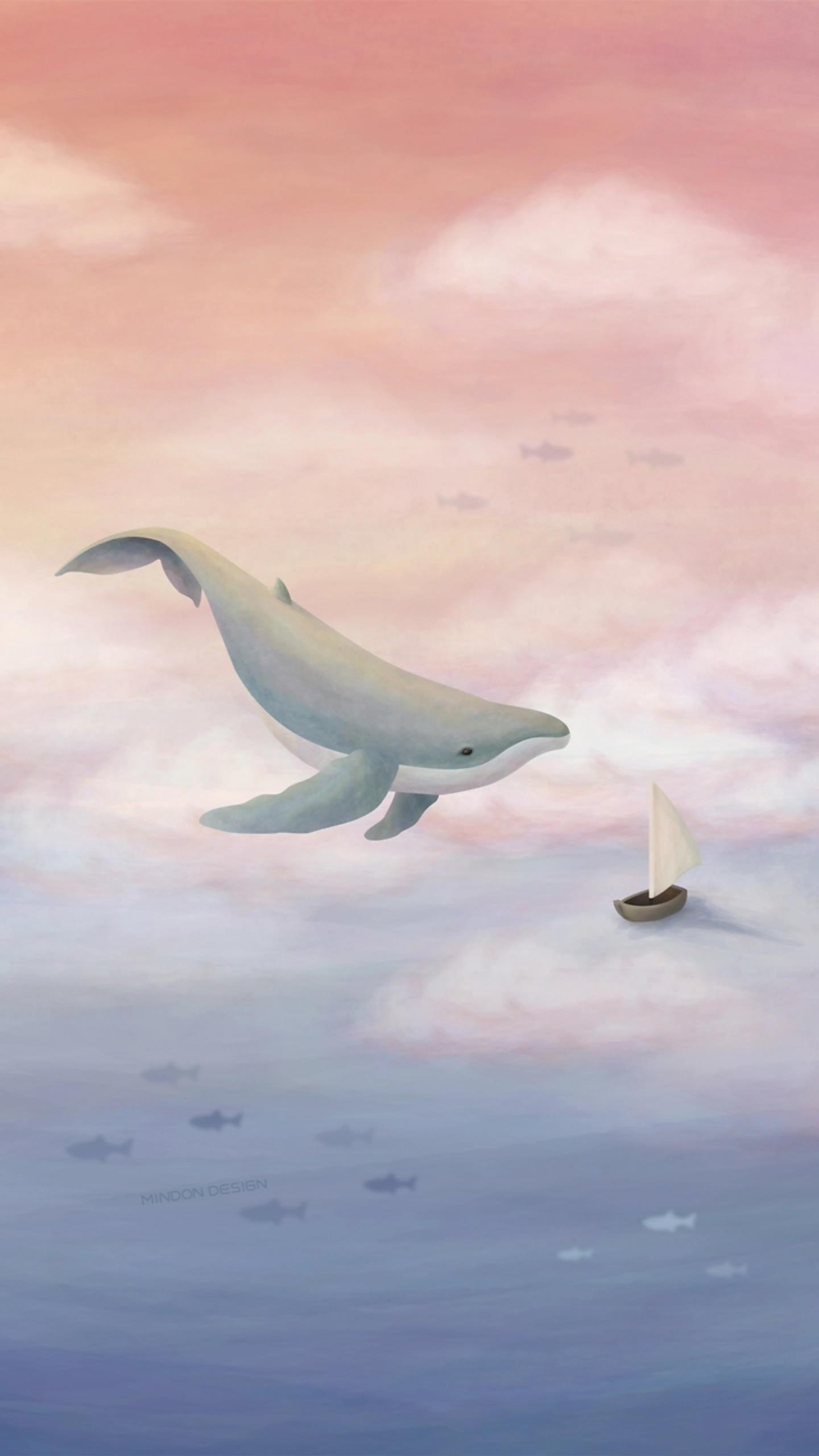 终于,在这片蔚蓝色大海上,鲸鱼群和爱丽丝成功相遇了。鲸鱼群把爱丽丝团团围住,或许它们从来没有见过这么漂亮、羞涩的女士。它们碰触着对方,在海面上旋转、欢舞,就像鸣奏一曲海洋交响乐。