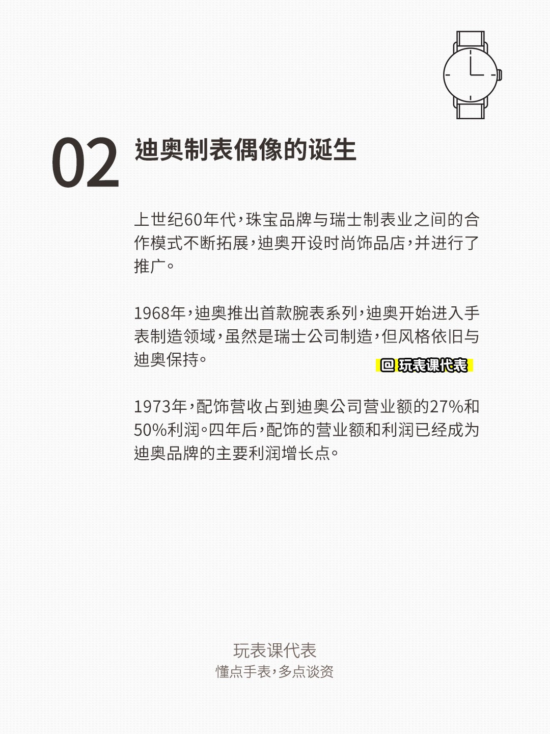 1968年,迪奥推出首款腕表系列,迪奥开始进入手表制造领域,虽然是瑞士公司制造,但风格依旧与迪奥保持。