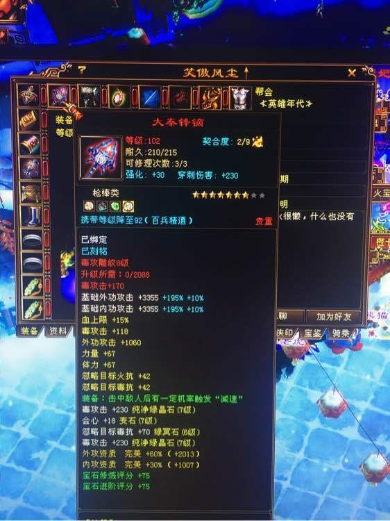 笑傲风尘,最早上8级宝石的三位大神之一,【上海滩】服务器最初的超级大佬,与如今的少林之神至尊笑我狂为死敌。
