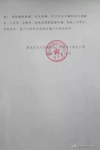 根据隆尧县大气污染防治工作领导小组办公室通知要求,自2020年1月13日12时起至1月23日,所有机动车限行措施改为每日限两号,星期一至星期五限行机动车车牌尾号分别为:2和7、3和8、4和9、5和0、1和6,尾号是字母的以最后一个数字为准,法定节假日和公休日不限行。外地牌照车辆与本地车辆同样受限行限制。