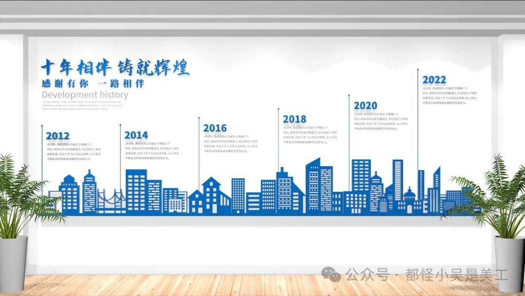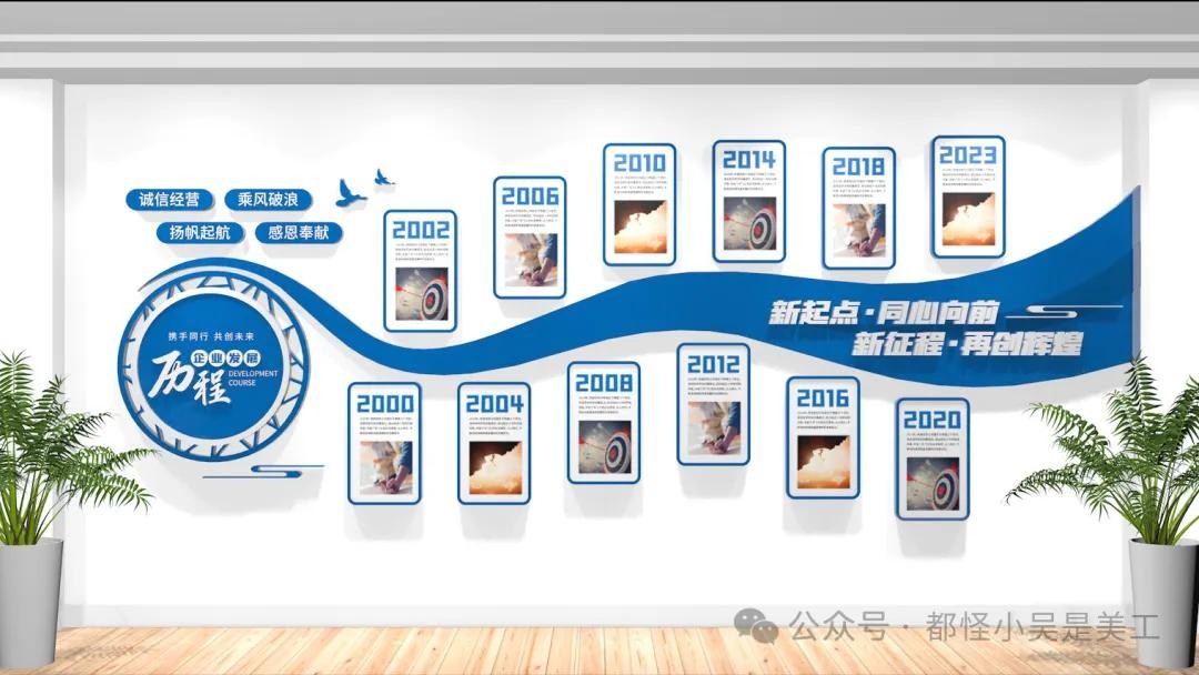 企业发展历程文化墙可以作为教育工具,向员工、访客和公众传递企业的价值观、使命和愿景。通过展示企业的成功经验和教训,可以激发人们的责任感和使命感,促进他们更好地理解企业的目标,并为之努力奋斗。