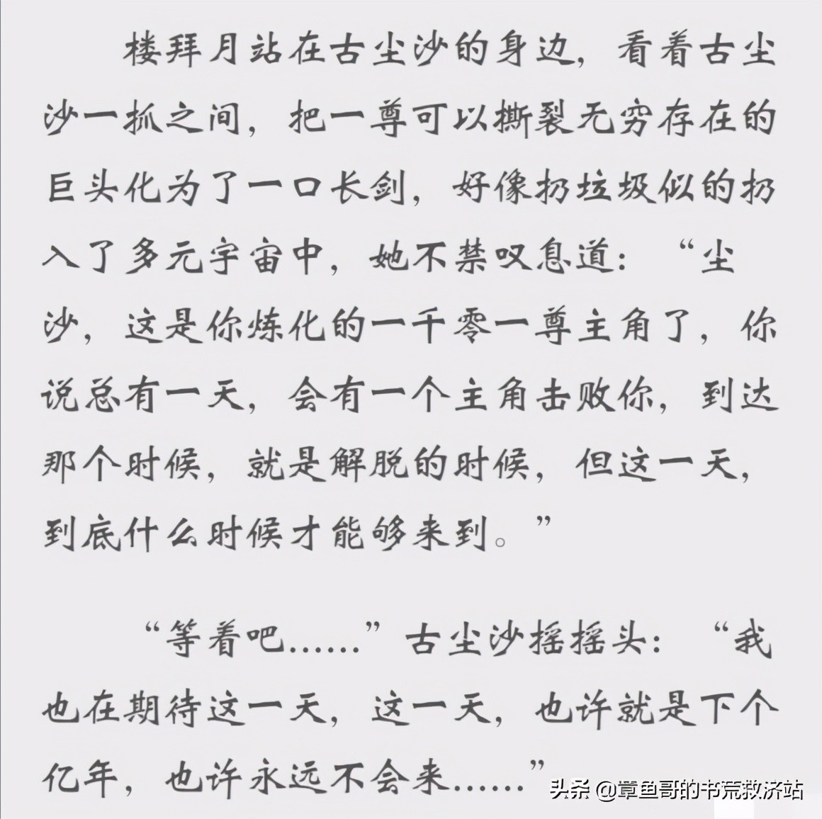 出自梦入神机的《龙符》,在古尘沙眼中,境界就是一个符号,所有的境界,都是由他来定义,无数所谓的主角被他击败后炼化,他在等待有一天有一个主角将他击败,那就是他解脱的时候,但是那一天也许永远都不会到来。