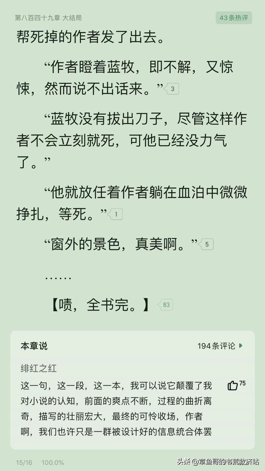 出自小说《非人类基因统合体》,主角蓝牧在全书大结局时打破次元壁,跑到现实世界干掉了作者,就问你怕不怕。