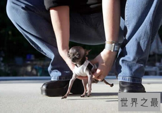 来自美国波士顿3岁大的吉娃娃Ducky被《吉尼斯世界纪录大全》评为当前世界上个头最小的狗。Ducky 身长只有4.9英寸(约12.4厘米),体重不到1磅6盎司(约623克),小脑袋只有一颗草莓那么大。属于世界上最轻的动物之一。