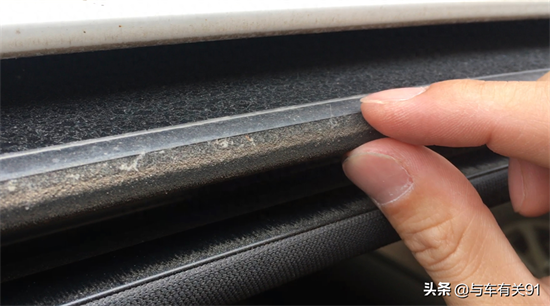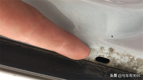 用手去摸一摸看有没有东西堵着,从车窗里进来的水,就会在这里排出来,如果被堵的话,车门里会有积水
