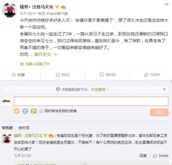 本以为骚男可以这样一直和七七走下去,但谁也不曾想,在前不久就被爆出了骚男和七七离婚的绯闻,但绯闻毕竟是绯闻,最后骚男也没有给出一个明确的答复,但就在昨晚骚男发出了一则微博,并且明确的表示自己已经和七七离婚,而且骚男还将自己所有的财产全部转到七七的名下,可见这是多好的一个男人啊!