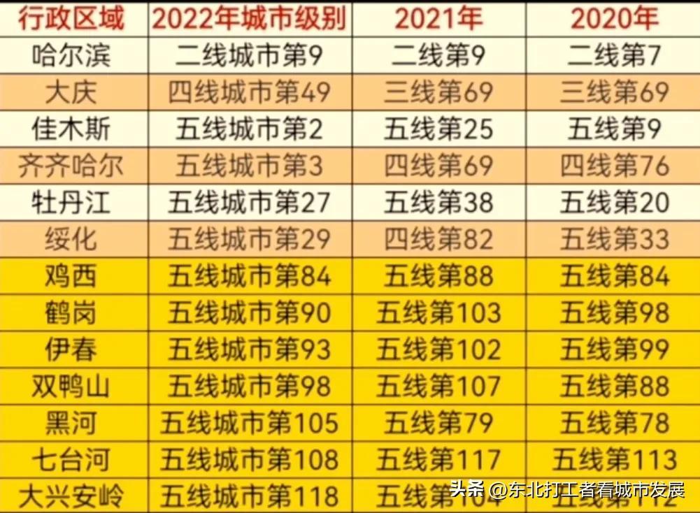 黑龙江城市档次排名:哈尔滨二线,大庆四线,齐齐哈尔没落为五线