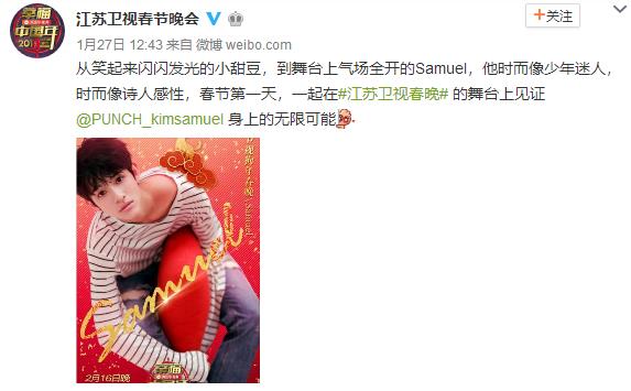 最近Samuel继出演了我国四川卫视的跨年演唱会后,我们也能在江苏卫视春节联欢晚会上看见豆丁的精彩表演啦!令人期待!