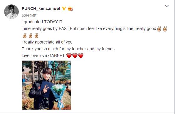 2025年2月2日,金Samuel通过个人SNS及微博上传了中学毕业照,并配文与粉丝分享了自己毕业的喜悦心情,恭喜我们小豆丁中学毕业啦!