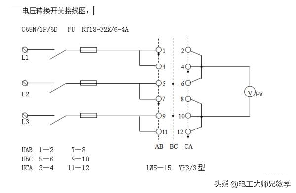 工厂常用转换开关接电压表、电流表接线图+实物讲解,秒懂!