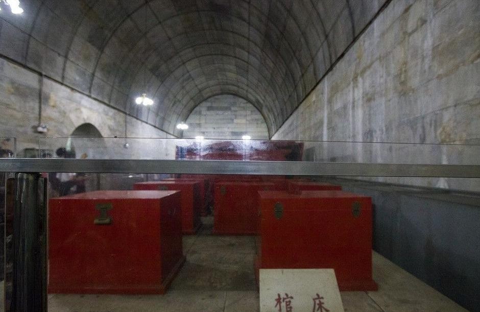 整个陵墓是一个用条石砌成的巨大宫殿,前后沿着一条纵向的中轴线铺开,直通前殿、中殿和后殿三个大殿,前殿就是第一个被进入的宫殿,里面什么都没有,直到进入到了中殿,才见到了许多摆放整齐的汉白玉座椅,旁边则是祭祀用的器皿,地宫两边是按照旧紫禁城中,妃子们居住的东西六宫,按照规定这两个左右配殿,是用来给妃子们陪葬用的,显然两个空荡荡的配殿,表明它并没有真正的使用过,而后殿就相当于紫禁城中,皇帝居住的寝宫,木床之上,三个硕大的朱红色棺椁阴森森的摆列着。它们分别安葬的是万历皇帝跟他的两名皇后,作为明朝在位期间最长的万历皇帝,跟他一起埋葬的,还有一个凄美动人的爱情故事。
