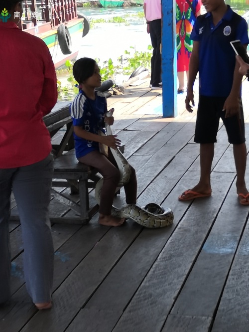 到此观光的游客中可不仅有我们中国人,还有日本人、韩国人和欧美人。让你无法想象的,这个湖上还有贸易市场。贸易市场实际上就是一只大船。当我们登上大船,走进市场,还真叫开了眼界,鳄鱼、蟒蛇、各种水鸟,以及渔民自己制作的手工艺品。