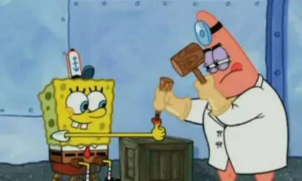 海绵宝宝不了解怎样处置肿起来的手指时,于是他问了派大星,然而派大星的思维很失常理:用木钉扎在海绵宝宝的指头上,而后用锤子把木钉锤进去,如许便能把肿胀的局部弄破。这固然是动漫,但是消肿不对本质,并且一朝被儿童拿来学,成果很严沉!