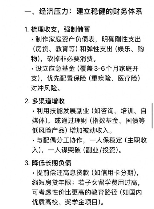 家庭负担:承担子女教育费用(如升学、留学)、房贷车贷、赡养父母等开支,经济链条紧绷。