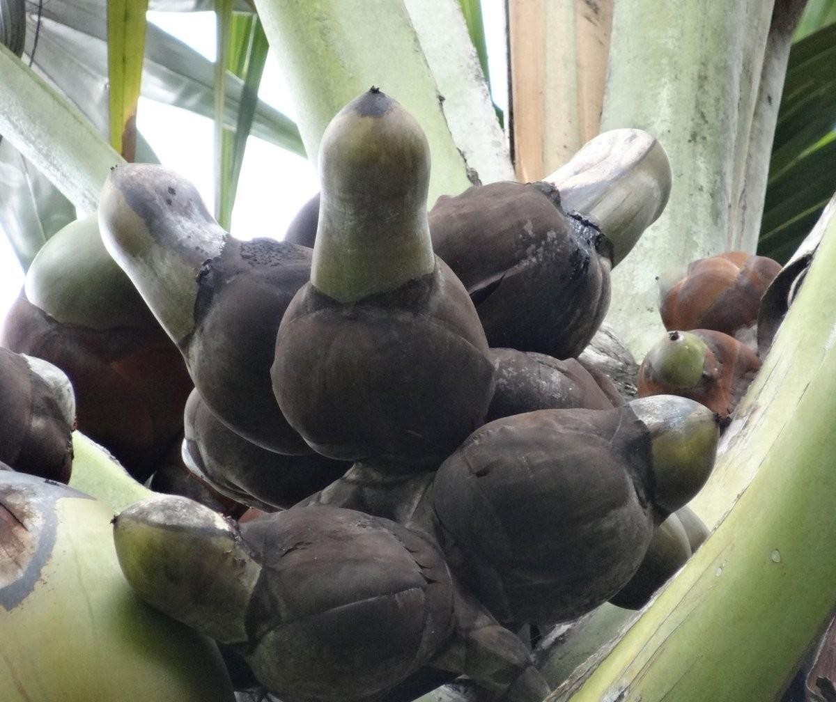 成熟的海椰子重达10-20千克,远超我们普通的椰子,是世界上最重也是最大的种子。