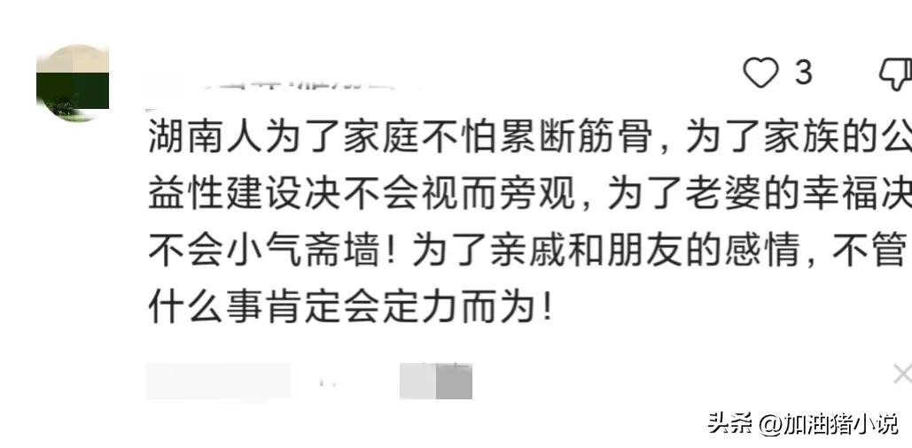 湖南人为了家庭不怕累断筋骨,为了家族的公益性建设绝不会视而旁观,为了老婆的幸福绝不会小气吝啬,为了亲戚和朋友的感情,不管什么事定会尽力而为。
