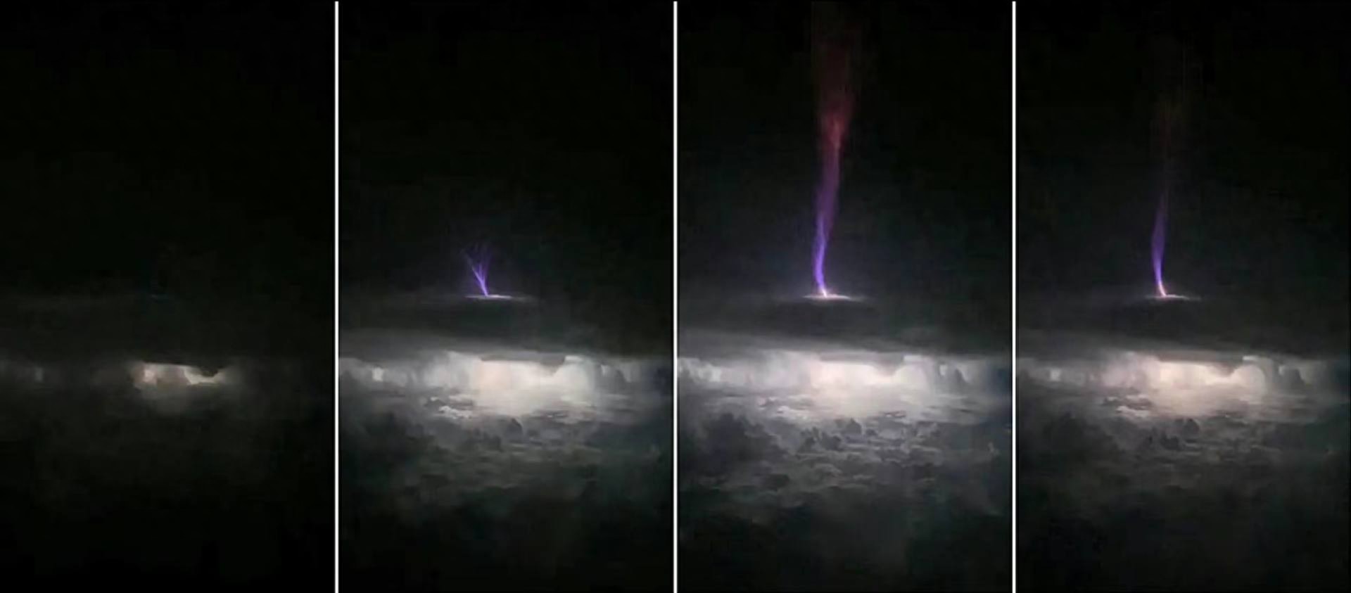 震撼!史上最大反向闪电被拍下,巨大喷流击穿云层,触及太空边缘