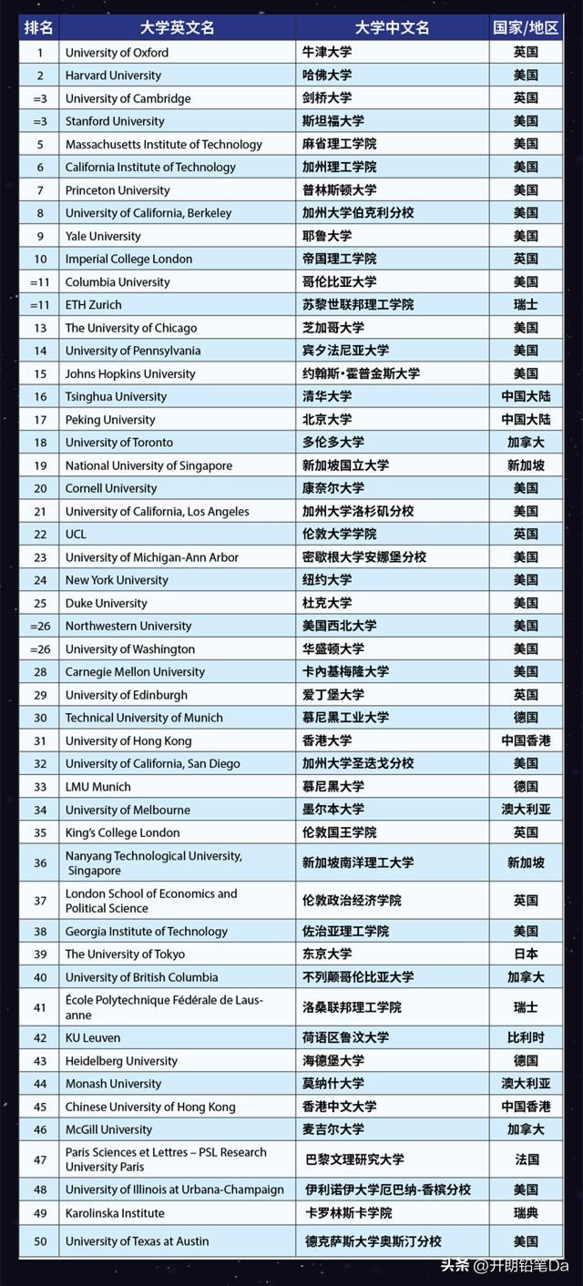 世界最顶尖的100所大学-全球排名前100的中国高校