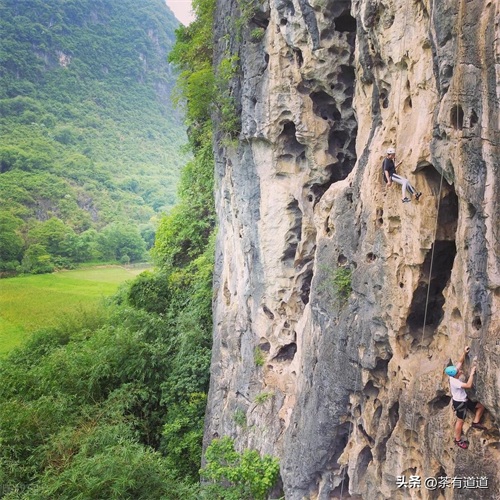 附近的垂直陡峭的悬崖峭壁,以及粗糙的石灰岩上可以多次攀爬。这里天然的攀岩场所让阳朔成为世界攀岩者的天堂。在过去的十几年里,景区专业攀岩公司富有经验的专业攀岩教练和几十种专业的现代攀岩设备和完善服务措施,保证了攀岩者享受探险和娱乐的体验,同时也获得了更多的安全保障。