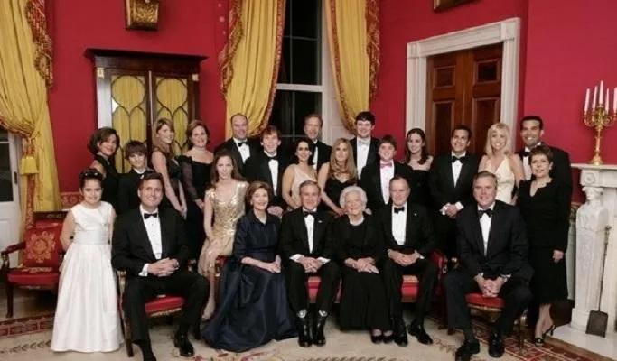 布什家族的发端应追溯至布什的曾祖父塞缪尔·布什。塞缪尔生于美国东北部俄亥俄州首府哥伦布市,该地以民风保守著称,这也使布什家族从一开始就带着正统色彩。塞缪尔最初经营钢铁制造业,不久就以敏锐的眼光发现了石油业的光明前景,迅速与洛克菲勒家族旗下的公司建立了合作关系,从此发展起来。一战结束后,塞缪尔与华尔街金融大亨沃克结成莫逆之交。1921年8月,塞缪尔的儿子普雷斯科特与沃克的女儿多萝西结婚,成为布什家族史上的里程碑。沃克全名乔治·赫伯特·沃克,两代总统中,老布什全名乔治·赫伯特·沃克·布什,布什全名乔治·沃克·布什,单从这一细节,就可看出沃克对布什家族的意义。