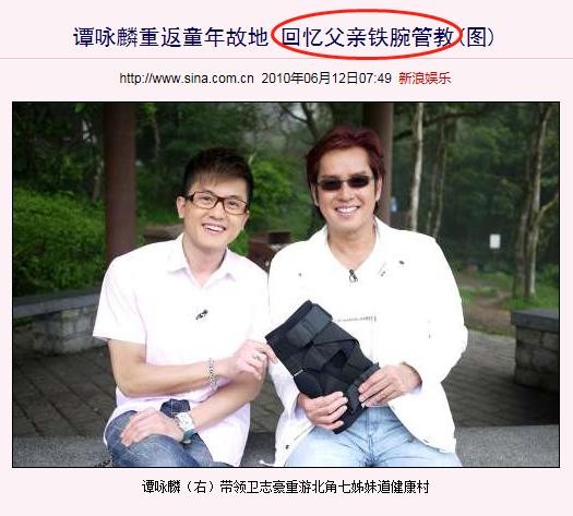 一次吃饭,大妹向爸爸投诉被谭咏麟欺负。爸爸听了二话不说,一拳打掉他的饭碗,朝他腿上就是狠狠一脚——