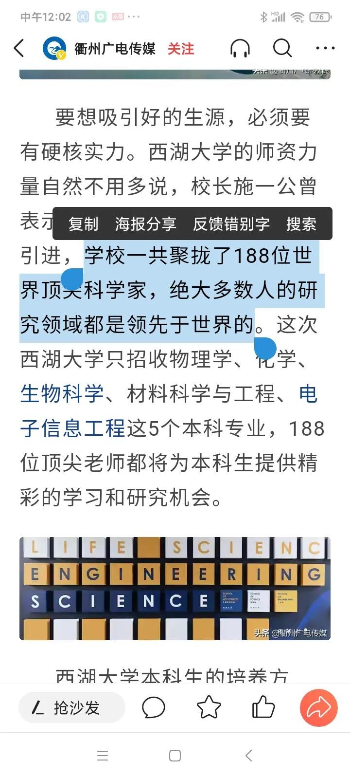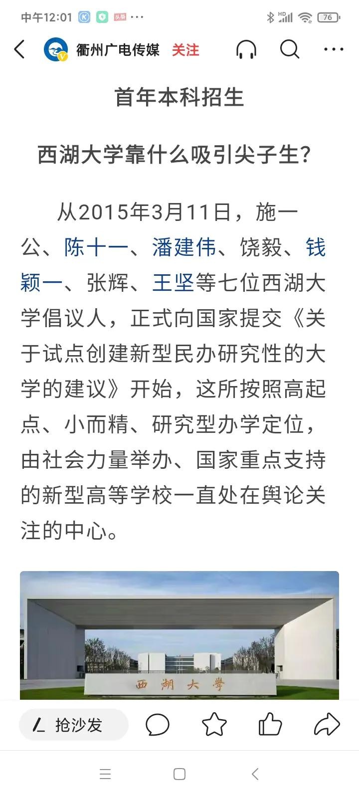 今年西湖大学开始在浙江省招生60名,从生源的高考成绩看,取得巨大的成绩和浙大不相上下,基本上可以说已经超越了浙大。学生大部分来自本省的顶尖中学,镇海中学,学军中学,温州知临中学。