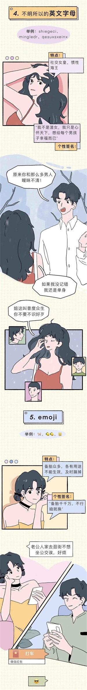 但是你知道吗?在生活中对于一些高段位的渣女来说,所使用的微信昵称也是比较特殊的,而且其中也是隐藏了很多的小秘密,下面就通过一组漫画的形式带大家来了解一下吧。看看你的朋友圈里有吗?