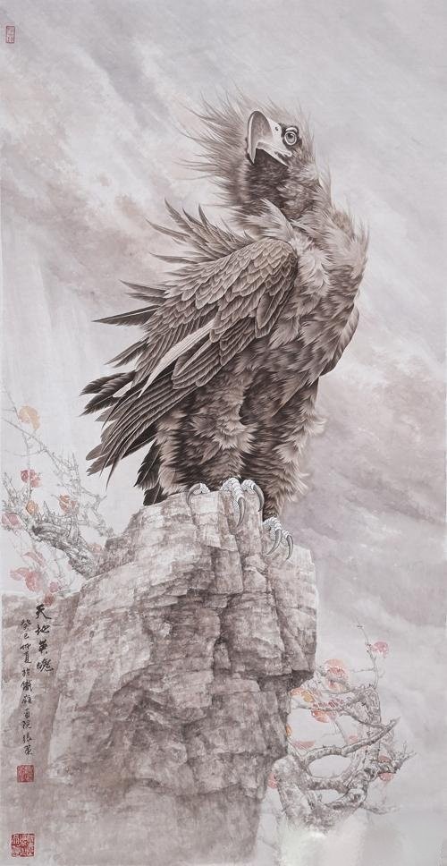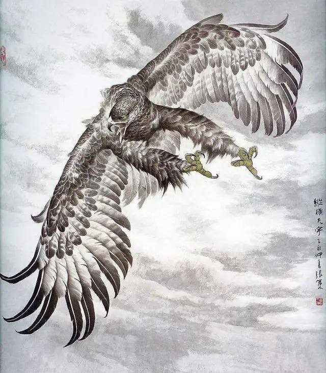 鹰击长空 动感十足——张策大气的工笔雄鹰作品欣赏
