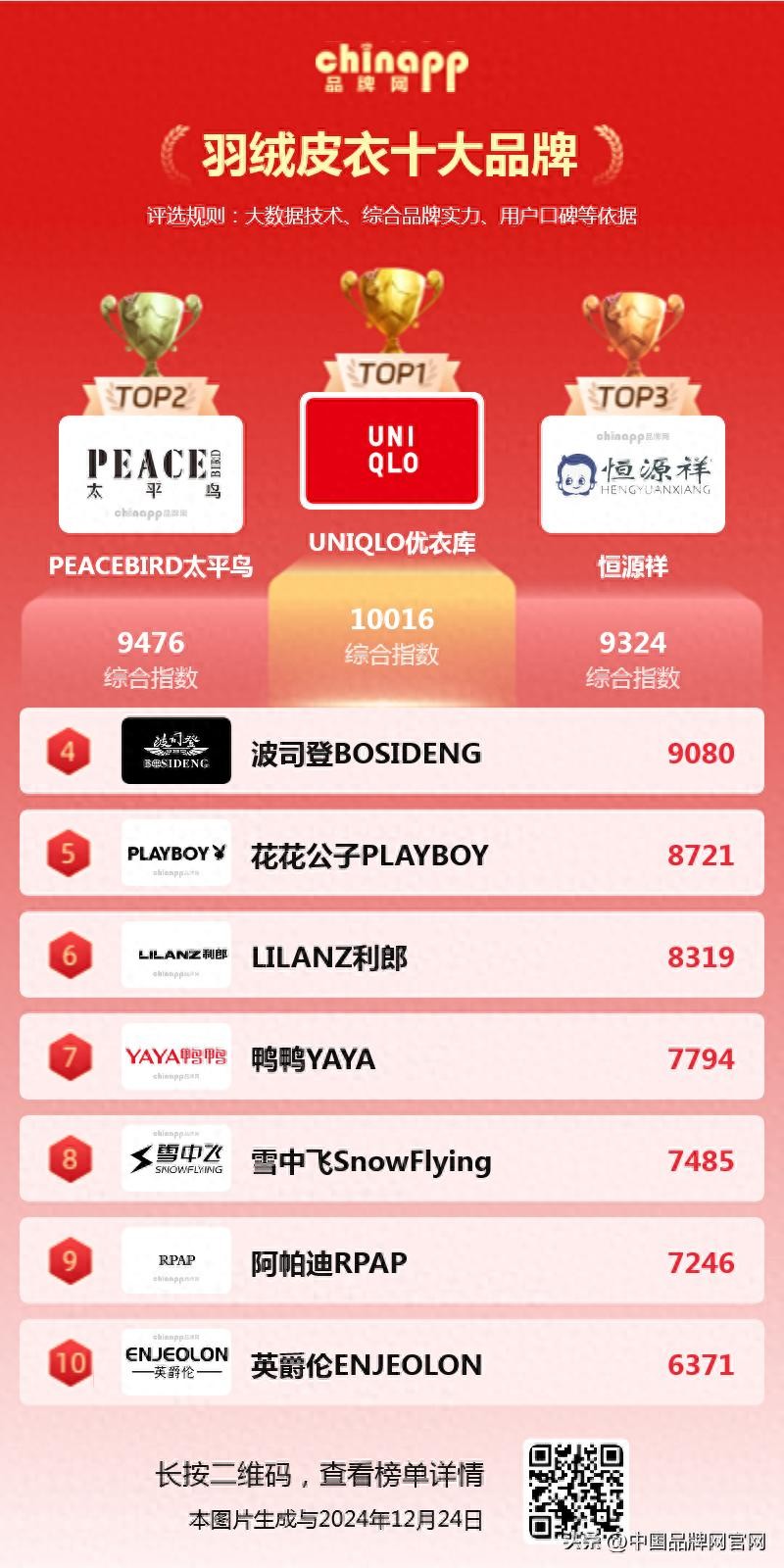 以上就是羽绒皮衣的一些品牌,想要了解更多行业榜单,请联系品牌网。