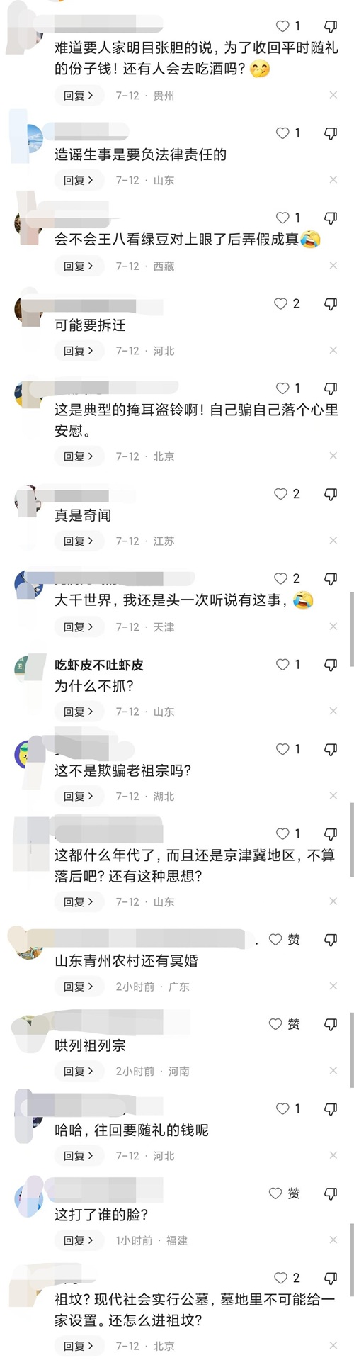 7月12日,顶端新闻记者就此事咨询了廊坊市及部分区县的民政局,均表示没听过此事。当地居民则表示,未婚不入祖坟这一现象确实有,但一日夫妻着实没听过。