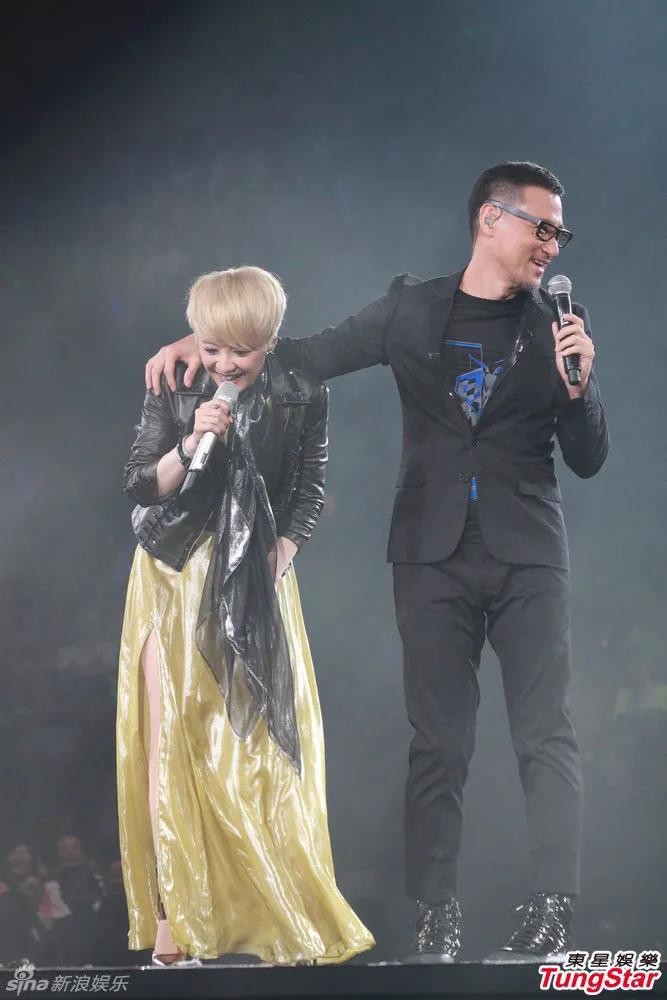 这张照片主要揭开的秘密就是鞋子和合照对象,不看鞋子张学友就是属于比较矮的,看鞋子很明显是增高的,合照对象本身不高,加上俯身对比就显得张学友比较高,其实就是错觉,加上人在台上本身给人高高在上的感觉。