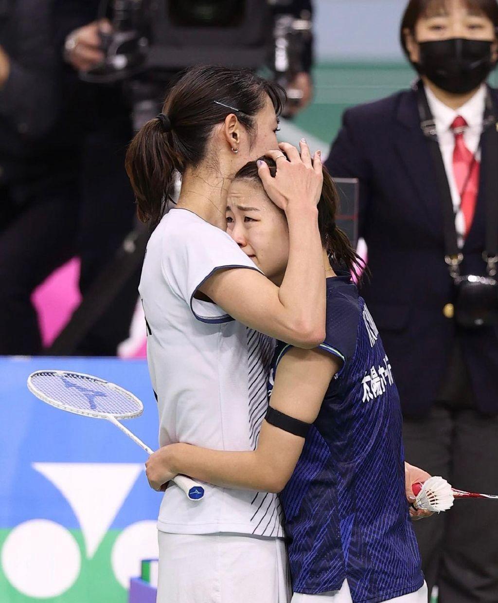 感动!26岁羽毛球世界冠军获胜后向对手鞠躬,两人在场上抱头痛哭