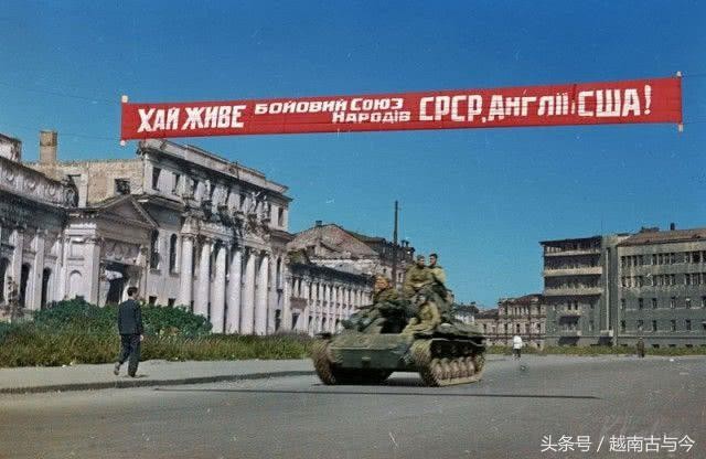 1943年,驾驶坦克的苏联士兵出现在哈尔科夫市