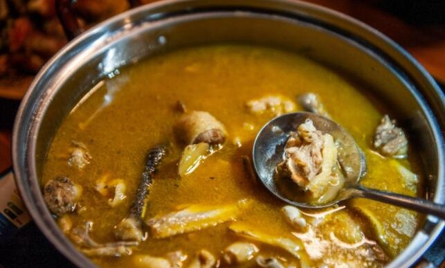 而这些创造牛粪暖锅的本料也是有必定前提的,这头牛被宰杀前吃的并不是一般的草,而是被一些掺有高等中草药的青草饲料,而这些物品在被牛消食后,许多养分物资便形成了食物液体。当这头牛被宰杀之后把牛胃及小肠里未实足消食的食物拿出来,挤出个中液体,介入牛胆汁及佐料搁入锅内文火缓熬后食用。