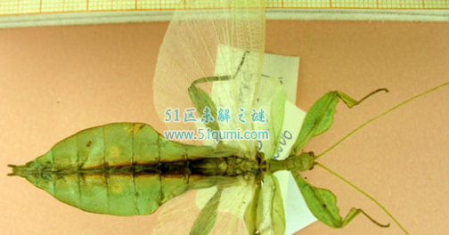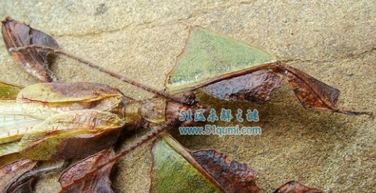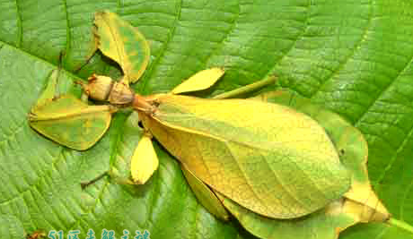 叶子虫,具备扁平、横扩的腹部,扩充的腿节以及褐色或者绿色等特性,使得这类虫豸瞅上去和树叶毫无区别,当它们休憩时,用长长的前翅笼罩在通明的后翅上完毕假装,外表的纹理和和色斑以及在和风中的摇晃使得假装更为真切。体色多为绿色或者褐色,跟所休憩生计情况中的植物叶片脸色相像,因而不易被天敌动物创造,得以遁避侵袭。