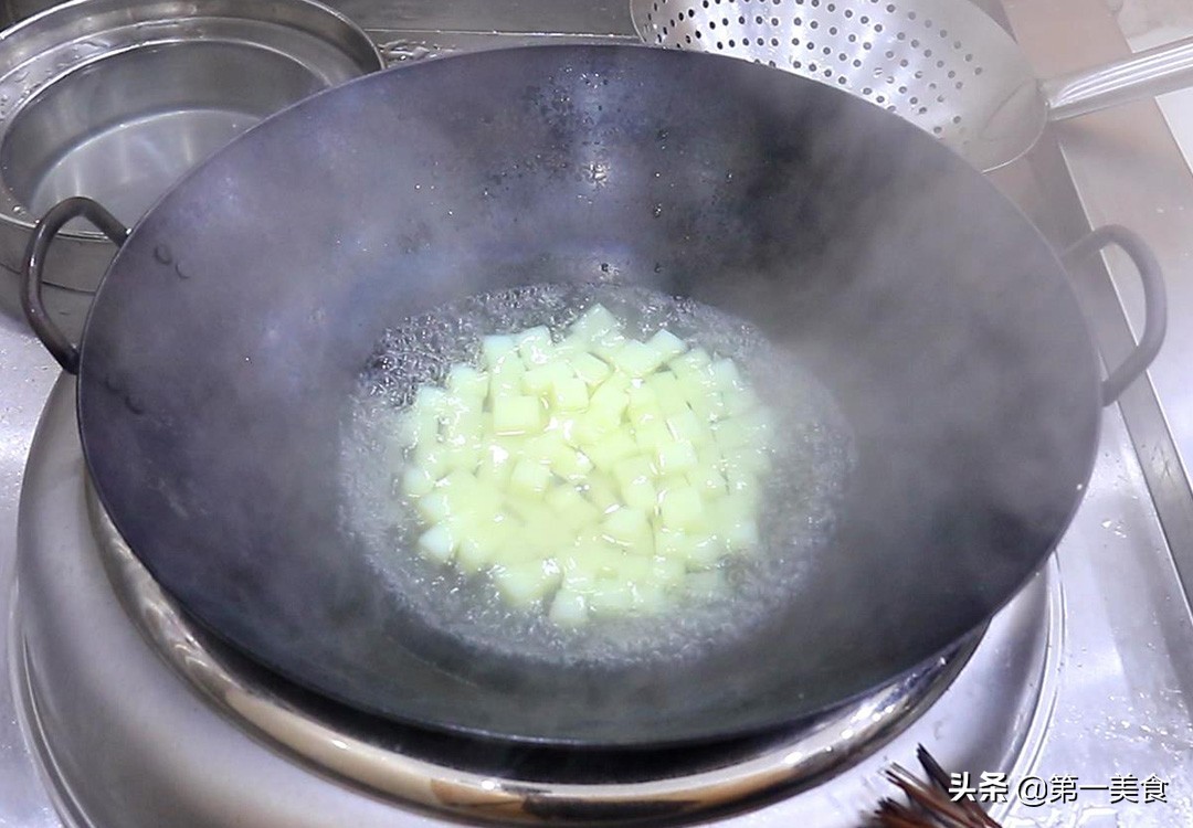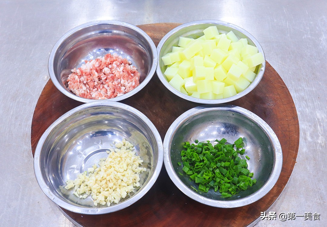 准备土豆一个,削去外皮后切成小块,用清水泡上以免氧化变色。