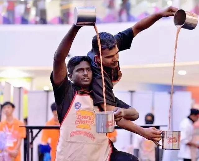 “印度拉茶”的制作方法是:先把水烧热,加入立顿红茶和姜烧开,再加奶烧开,最后放入马萨拉调料。厨师如果想“作秀”,还可以将茶水在两只茶杯间来回倾倒,展示“拉茶”的制作。