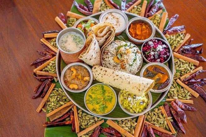 南印度菜系,香料多用咖喱叶和芥末子,口味较重,以酸、咸、辣为主,原料多用椰子,菜式简单。