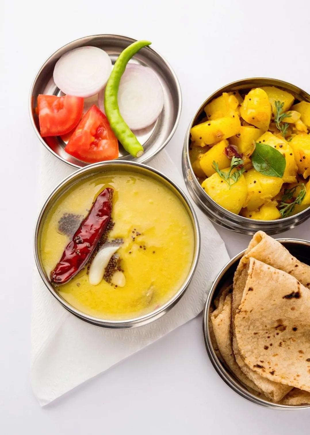印度人不怎么喝汤,且以各式饼类取代米饭为主食。但是有一种印度式炒饭,米粒饱满纤长,咬劲松软,放多些水蒸煮也不会粘糊,呈现出润泽的金黄色。而说到其主食膳饼,则有些类似台湾的炒饼,但薄了许多,且仅为炸与烤二种。像以芥麦粉加入沙拉、油、糖、盐、牛奶,揉成球状后铲平,立即置入锅中炸成中空膨酥的麦饼,再沾上酸酸甜甜的芒果酱或咖喱泥入口,当脆嫩的饼皮碰上那用芒果、水蜜桃、姜丝、菜果醋混合煮成的冰镇糊酱,口感极佳。另外还有一种奶油煎饼,平铺上揉入香奶油的面团,涂各式口味泥末食之,外酥内软颇为可口。
