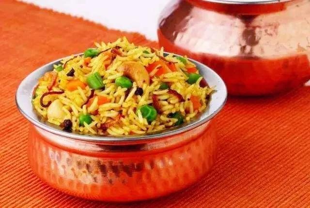 特色:印度人习惯于在吃完饼之后吃米饭。印度的米饭用一种名叫BASMATI的米做成,由于印度半年干燥、半年湿润的气候,这种米形状细长,味道浓香,世界闻名。“孜然青豆米饭”是先用豆油炒香孜然,再放青豆和米饭翻几下出锅,孜然香味很容易引发人的食欲。